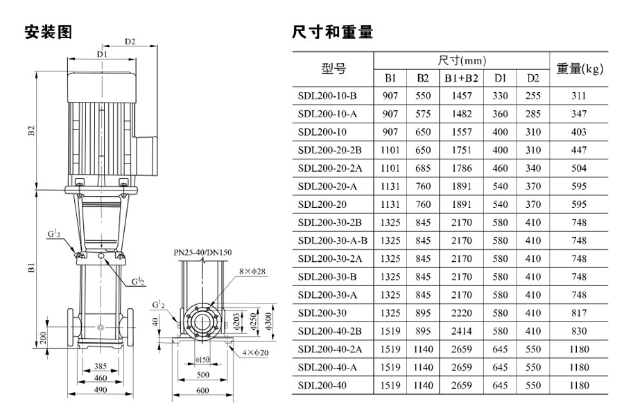 南元SDL200/SDLT200立式多級(jí)離心泵有不同的泵規(guī)格和不同級(jí)數(shù),以滿足所需的流量和壓力。