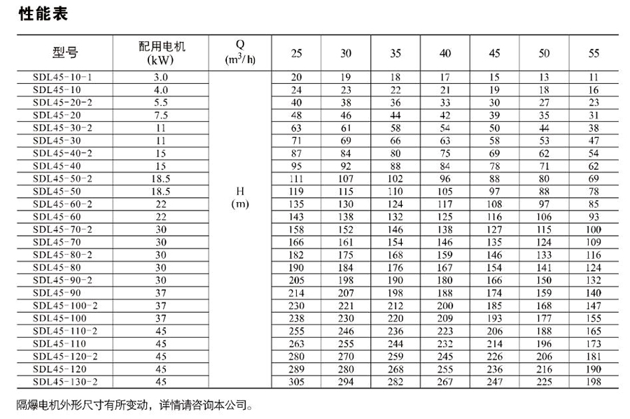 南元SDL45/SDLT45立式多級離心泵有不同的泵規(guī)格和不同級數(shù),以滿足所需的流量和壓力。